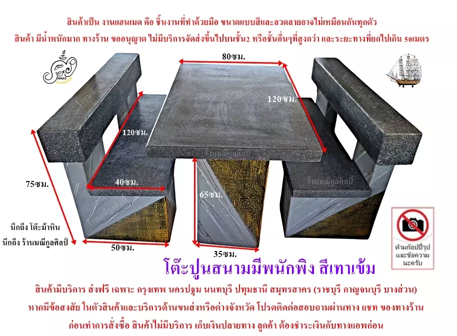 โต๊ะปูนสนามมีพนักพิง สีเทาเข้ม